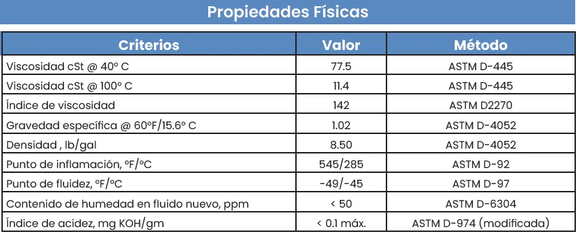 - Alto índice de viscosidad y bajo punto de fluidez